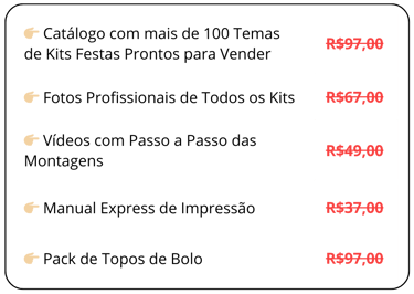 Mas agora você pode ter acesso ao Kits Festas Prontos Para Vender junto com todos os bônus por apenas: